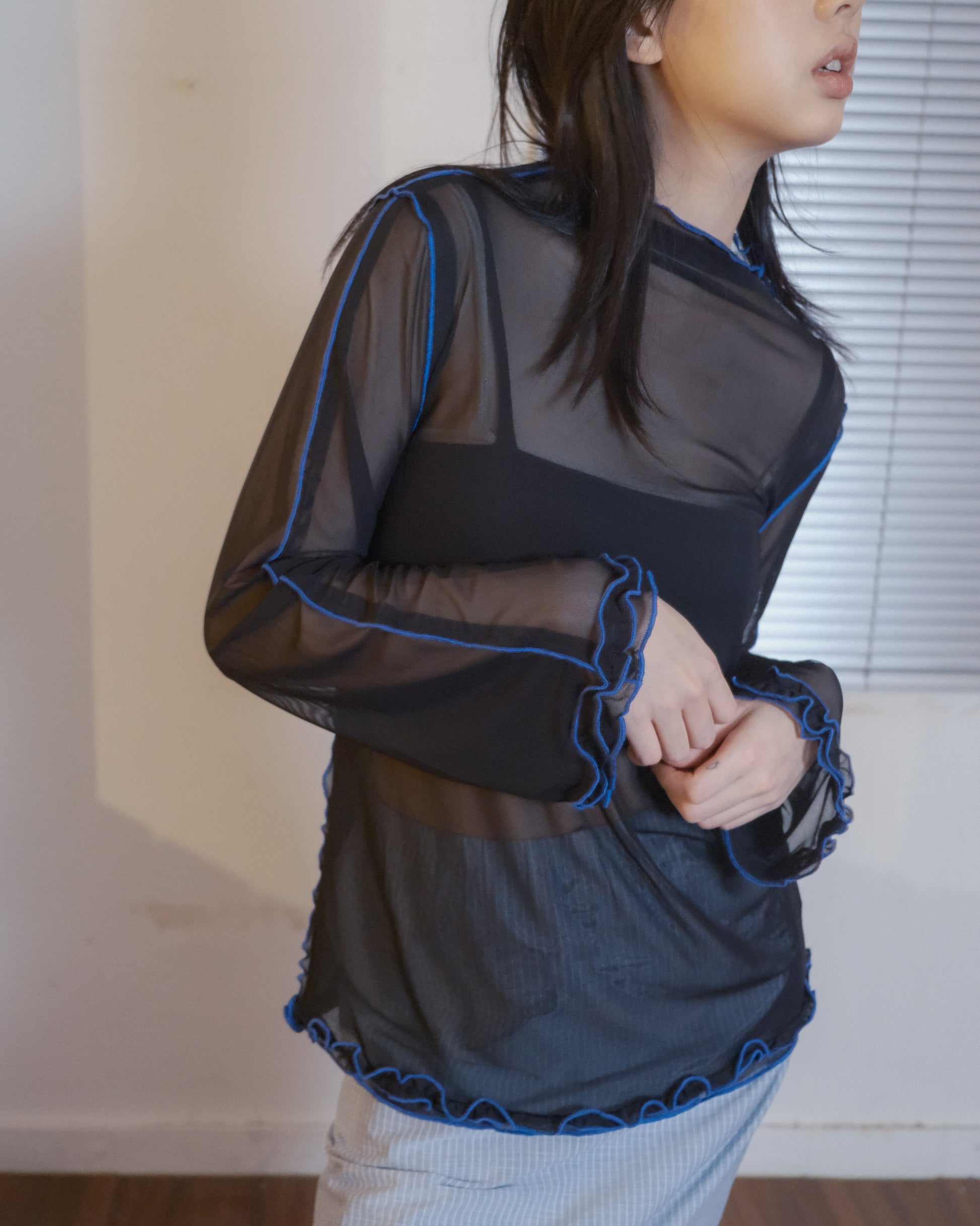 縫線荷葉邊上衣
